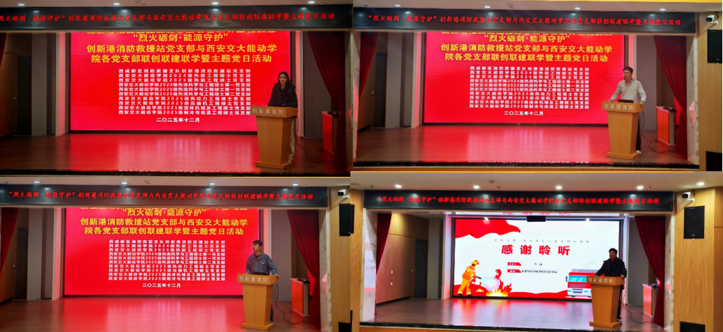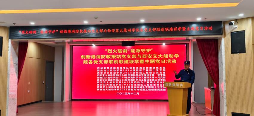 为切实提升师生消防安全意识与应急处置能力,筑牢校园科研安全生产“防火墙”,12月10日上午,西安交通大学能源与动力工程学院组织2024级、2025级共9个硕士生党支部30余名党员代表及入党积极分子,走进创新港消防救援站,与该站党支部联合开展“联创、联建、联学”主题党日活动。师生们通过沉浸式体验与深层次交流,致敬“火焰蓝”,磨砺“安全盾”,为校园科研安全注入强劲动力。
