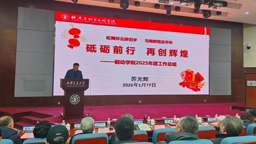 最后,学院党委书记曹锋作总结讲话。他充分肯定了2025年全院上下团结拼搏取得的成绩,并代表学院党委向辛勤耕耘在教学、科研、管理、服务一线的全体教职工致以诚挚感谢。曹锋书记深入分析了学院学科发展的差距和压力,提出了强化基础研究、加强人才队伍建设、凝练学科方向、推动学科交叉、开展有组织科研、加强国际合作、健全学院安全体系和机制等要求。他表示,未来我们将进一步弘扬西迁精神,营造充满活力、具有西交能动辨识度的文化育人体系,营造风清气正的良好学术生态;努力建设奋力能动、清风能动、健康能动。