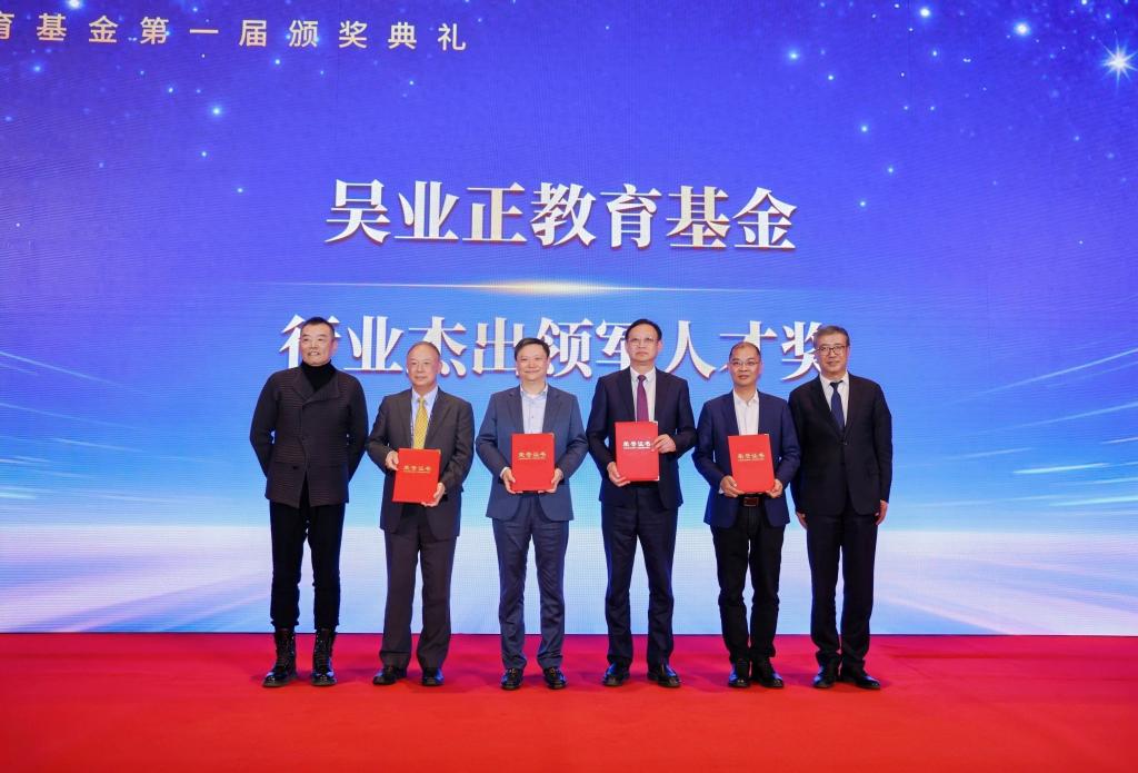 海尔集团董事局副主席、总裁梁海山先生,冰轮环境有限公司党委书记、董事长李增群先生,浙江三花智能控制股份有限公司董事长兼CEO张亚波先生,以及上海汉钟精机股份有限公司董事长余昱暄先生荣获第一届吴业正教育基金“行业杰出领军人才奖”,中国制冷空调工业协会会长李江先生、中国制冷学会副理事长兼秘书长李晓虎先生作为颁奖嘉宾为获奖者颁奖。