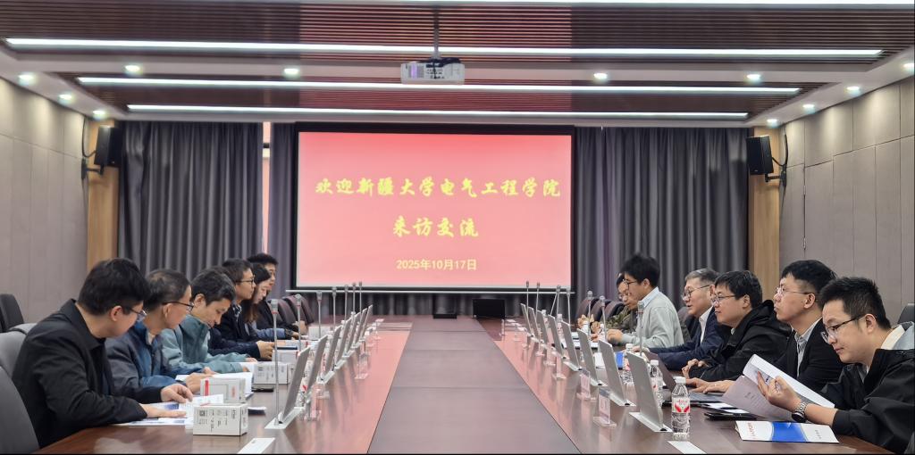 2025年10月17日上午,新疆大学电气工程学院代表团一行七人在院长陆海峰的带领下,访问西安交通大学创新港校区,与西安交通大学能源与动力工程学院举行交流座谈会。西安交通大学副校长严俊杰、能动学院党委书记曹锋以及学院师生代表共同出席了会议。会议由西安交大能动学院刘明老师主持。