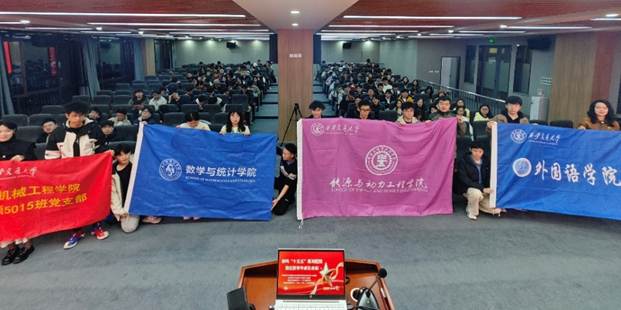 为深入贯彻党的二十届四中全会精神,引导青年学子将个人成长融入国家发展大局,2025年11月22日,能动学院2025级核科学与技术硕士第一党支部、数学与统计学院硕2025级第二党支部、机械工程学院硕5013,5015班党支部、外国语学院硕5123,5124,5125,5126班党支部联合开展主题党日活动。外语学院辅导员巩倩倩、能动学院辅导员马嘉谊以及各支部全体党员和积极分子共同参与本次活动,外国语学院硕5123班党支部书记郭沁坤主持活动。